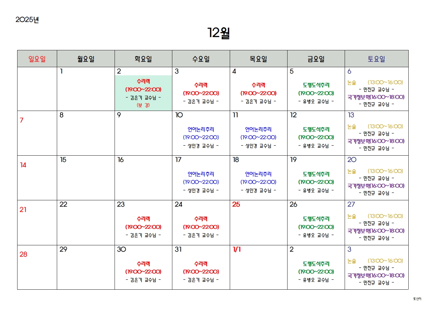 12월 10일(수) 부터 순차적으로 기본MASTER강의가 진행됩니다.