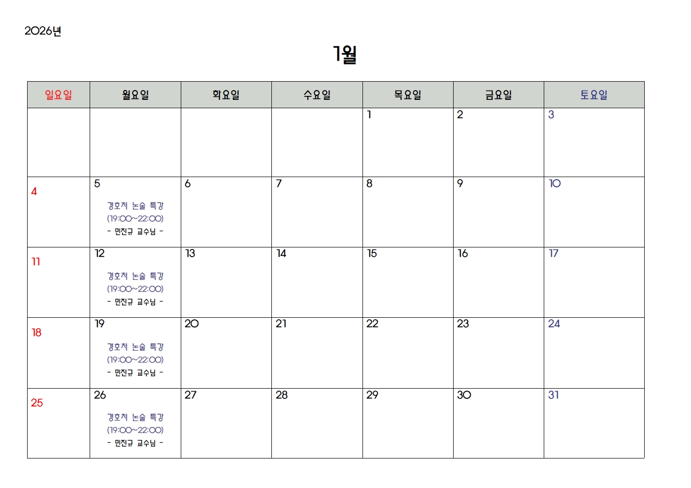- 2026년 1월 : 대통령 경호처 논술특강 > -> 4회, 1회 3시간 강의