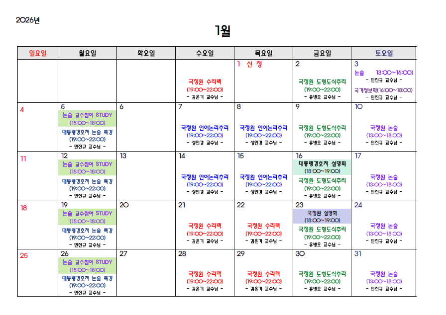 26년 1월스케줄을 확인해주세요^^