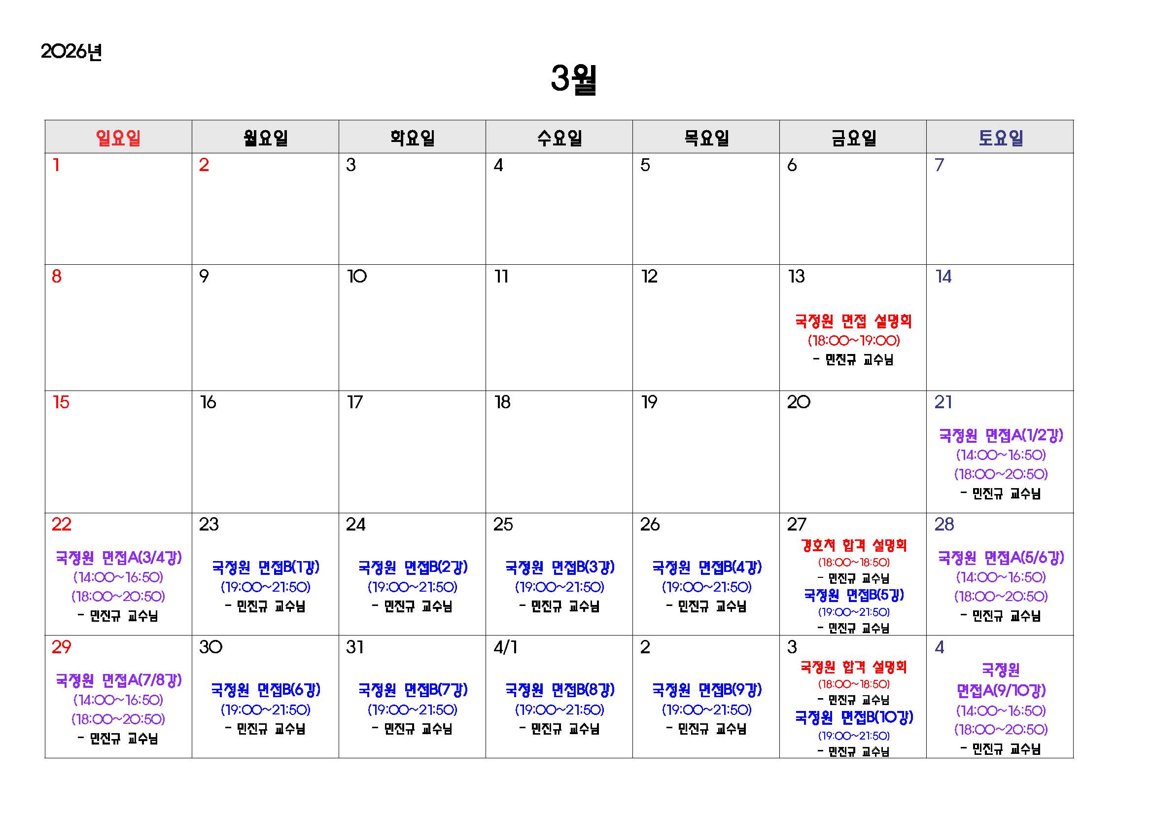 26년 3월스케줄을 확인해주세요^^
